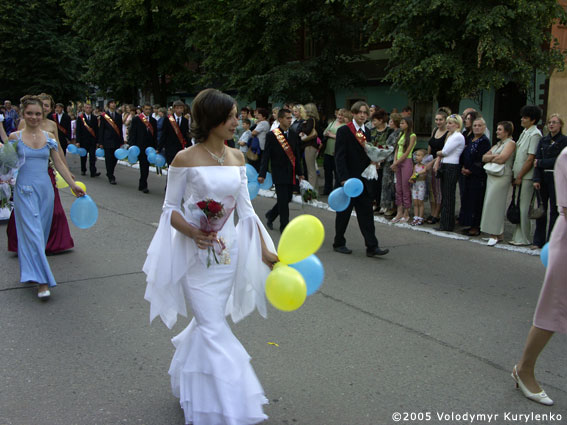 School graduates are marching along the streets of Krolevets, Ukraine. A nice habit!